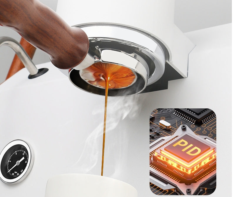 1.Double boiler design, hot water circulating saturated brew head, and the whole machine is connected with copper pipes.